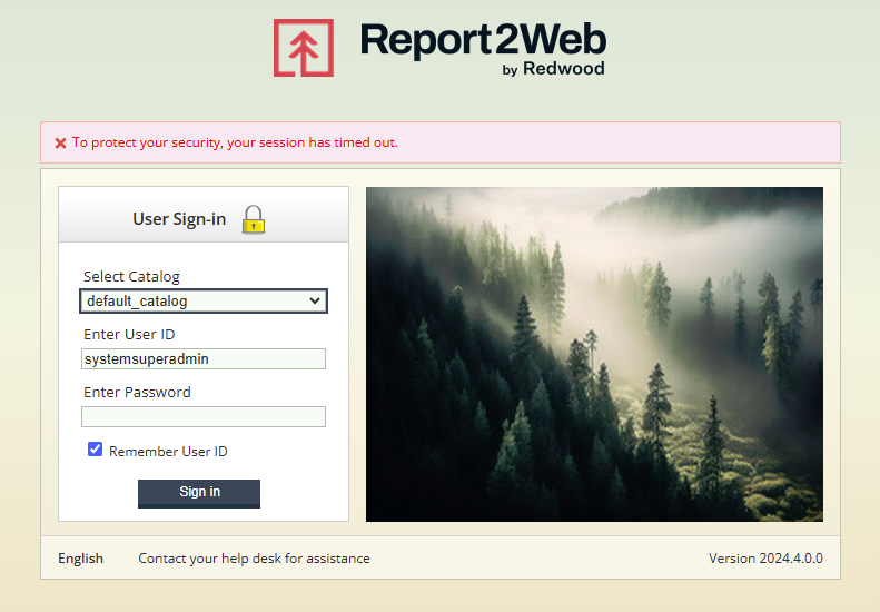 Signing in to Report2Web