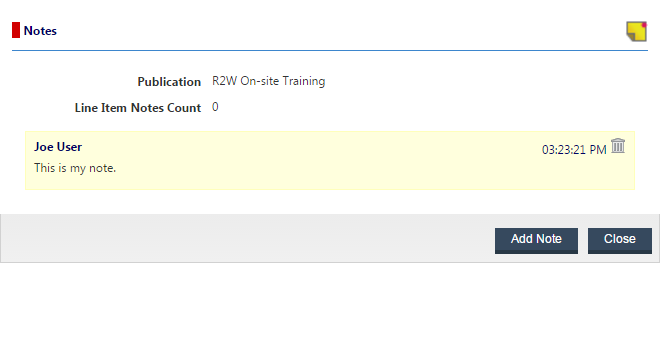PageMart Line Item notes can be viewed individually by hovering over the associated Notes icon within the margin of the report (as shown below). To view a listing of all Line Item Notes, tap once on the Notes icon found on the PageMart toolbar.